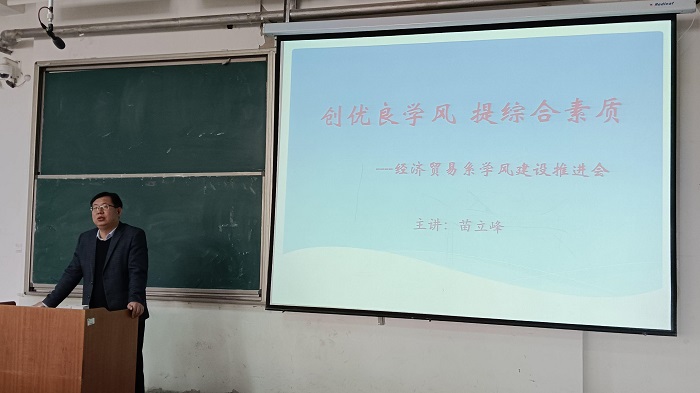 为进一步加强学风建设,提升学生综合素质,引导和激励广大学生刻苦学习、立志成才,3月12日,经济贸易系在笃行楼C区104教室举办了“创优良学风 提综合素质”学风建设推进会。经济贸易系党总支书记苗立峰出席会议并讲...