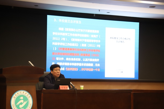 为进一步推进本科教学工作合格评估,加强合格评估观测点自评自建,切实落实评建工作任务,4月3日下午,我院在弘文守正楼党委会议室召开本科教学工作合格评估观测点再自评自建工作布置会。党委副书记、院长张效松,副...