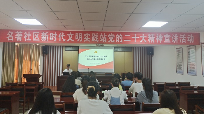 为进一步推动主题教育落地落实,6月8日,我院党的二十大精神基层宣讲员、电气自动化系郭佳琦同学走进名著社区新时代文明实践站,面向社区开展党的二十大精神宣讲活动。 郭佳琦以“深入学习贯彻党的二十大精神 推动水...