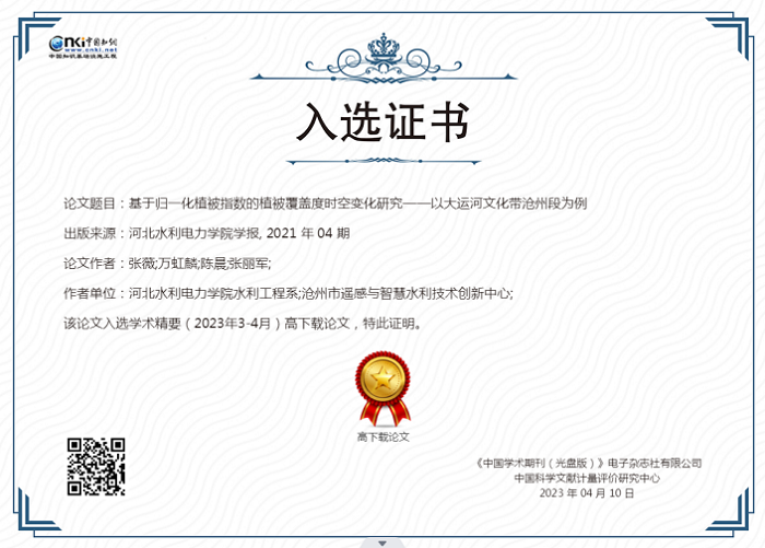 近日,中国知网《学术精要数据库》基于中国知网资源总库,首次发布近12年来高影响力论文榜单,《米兰体育平台,米兰(中国),学报》2021年第4期发表的《基于归一化植被指数的植被覆盖度时空变化研究——以大运河文化带沧州段为例》(作者:张薇、万虹麟、陈晨、张丽军)、《人脸识别的智能防疫系统设计》(作者:王继超、张丽娟、尤田、孙东来、回振桥)2篇论文入选。